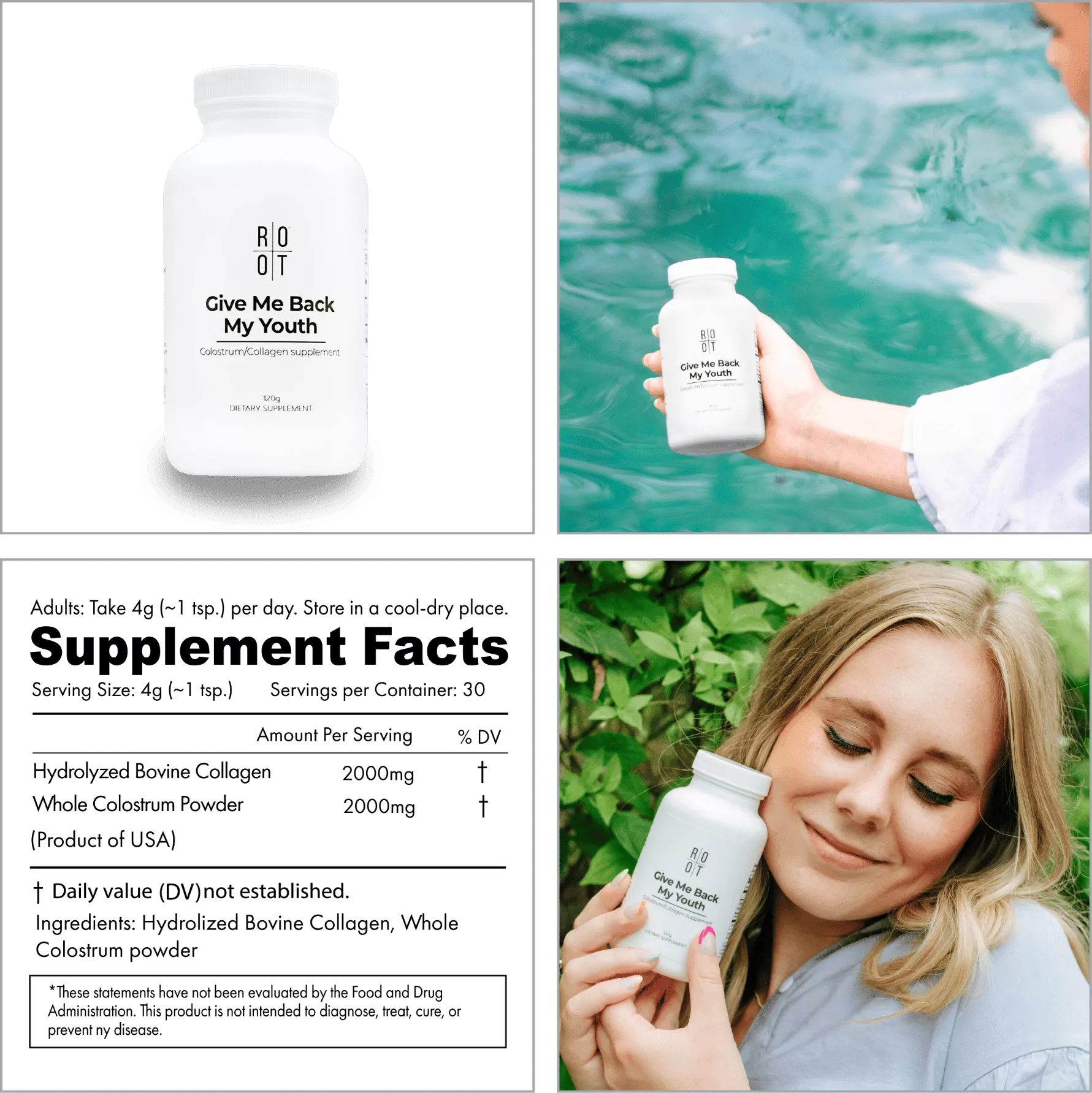 Give Me Back My Youth a été créé pour faire exactement cela, promouvoir l’anti-âge. La formulation GMBMY est “un” mélange exclusif de collagène et de colostrum pour aider à inverser les processus de vieillissement en renforçant les barrières cutanées, pulmonaires et intestinales, en reconstruisant votre microbiome et en activant la santé cellulaire pour raviver la santé immunitaire de tout le corps. Servant de l’un des principaux éléments constitutifs de la peau, des os, des tendons, des ligaments, des muscles et des vaisseaux sanguins, Give Me Back My Youth est très nutritif pour le corps et le système digestif.