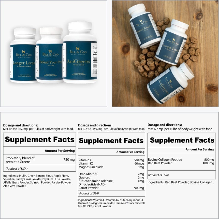 Aimed to benefit your pet’s lives, Longer Lives contain a proprietary blend of collagen & red beet powder to strengthen the heart, liver, joints, bones, skin, and digestive system.