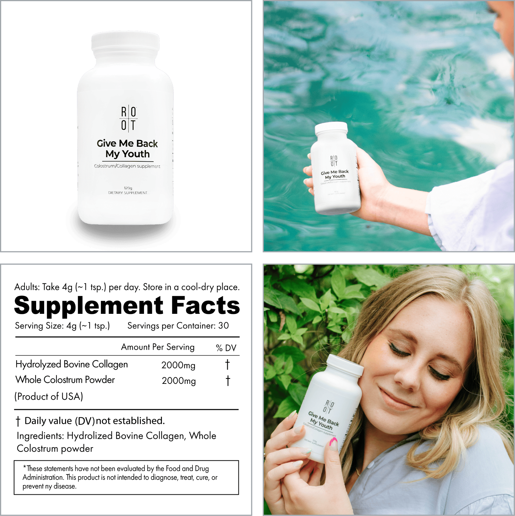 Give Me Back My Youth was created to do just that, promote anti-aging. GMBMY formulation is “a” proprietary blend of collagen & colostrum to help reverse the aging processes by strengthening the skin, lung, and gut barriers, rebuilding your microbiome, and activating cellular health to revive the whole-body immune health. Serving as one of the primary building blocks in skin, bones, tendons, ligaments, muscles, and blood vessels, Give Me Back My Youth is highly nutritious for the body and the digestive system.